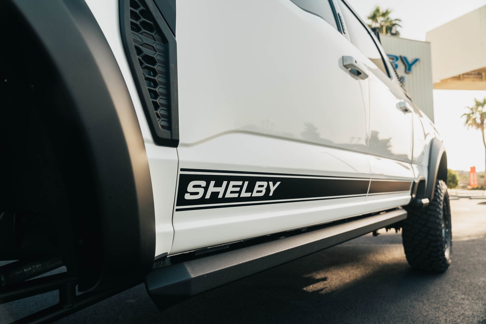 The Shelby Super Baja F-250 demands top-tier exterior components that are built to endure the rigors of off-road adventures. Our truck boasts a multitude of premium features that elevate it to the forefront of its class. These exceptional elements include a rugged BDS Suspension Lift System, a solid foundation with FOX shocks, Premium Wheels, Performance Tires, a versatile Baja Chase bed rack, multiple powerful LED light bars, distinctive Shelby logos and stripes, and an array of additional enhancements. All are seamlessly integrated to deliver an unparalleled driving experience, whether on the road or off the beaten path.